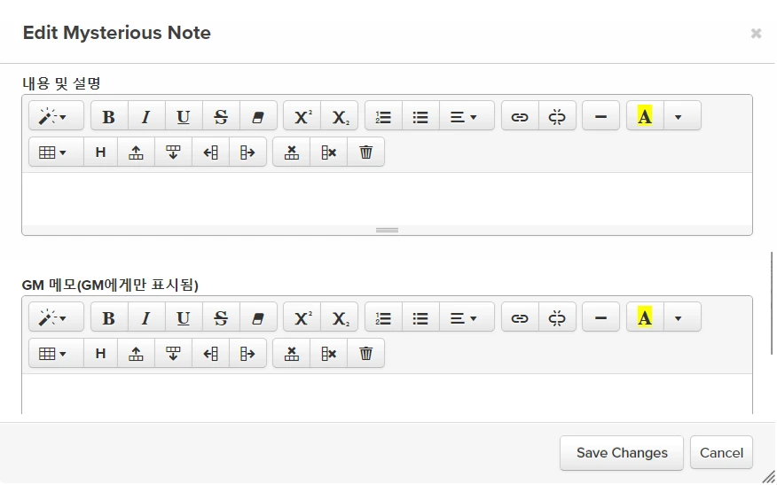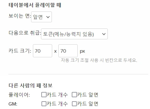 - GM ๋ง๊ณ ํ๋ ์ด์ด๋ ๋งคํฌ๋ก ๊ธฐ๋ฅ์ ์ถ๊ฐํ ์ ์์ต๋๋ค. ์ด ๊ฒฝ์ฐ ํด๋น ๋งคํฌ๋ก๋ GM์๊ฒ๋ ๋ค๋ฅธ PL์๊ฒ๋ ๋ณด์ด์ง ์์์ ์ฃผ์ํด์ฃผ์ธ์.