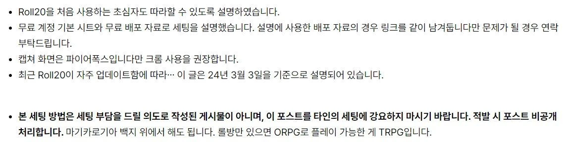 ์ ๊ฐ์ํ์ง ๋ง์๊ธฐ ๋ฐ๋๋๋ค. ์ ๋ฐ ์ ํฌ์คํธ ๋น๊ณต๊ฐ ์ฒ๋ฆฌํฉ๋๋ค. ๋ง๊ธฐ์นด๋ก๊ธฐ์ ๋ฐฑ์ง ์์์ ํด๋ ๋ฉ๋๋ค. ๋กค๋ฐฉ๋ง ์์ผ๋ฉด ORPG๋ก ํ๋ ์ด ๊ฐ๋ฅํ ๊ฒ TRPG์